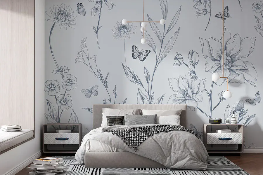 Ταπετσαρίες Σχέδιο λουλουδιών και πεταλούδων