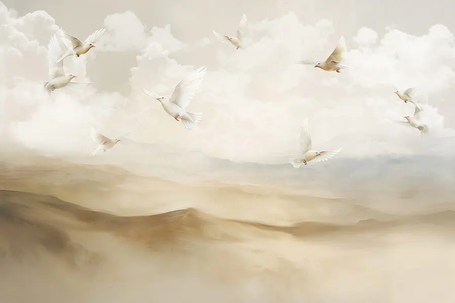 Ταπετσαρίες Ομάδα λευκών πουλιών που πετούν στον ουρανό
