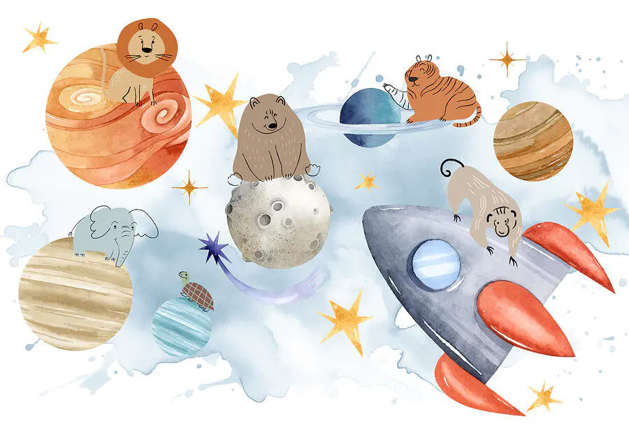 13.86 €8.32 €Ταπετσαρίες Μια διαστημική σκηνή κινουμένων σχεδίων με πλανήτες και αστέρια