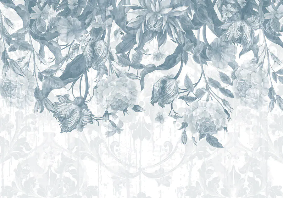 Ταπετσαρίες Λεπτό φλοράλ μοτίβο σε ψυχρούς τόνους