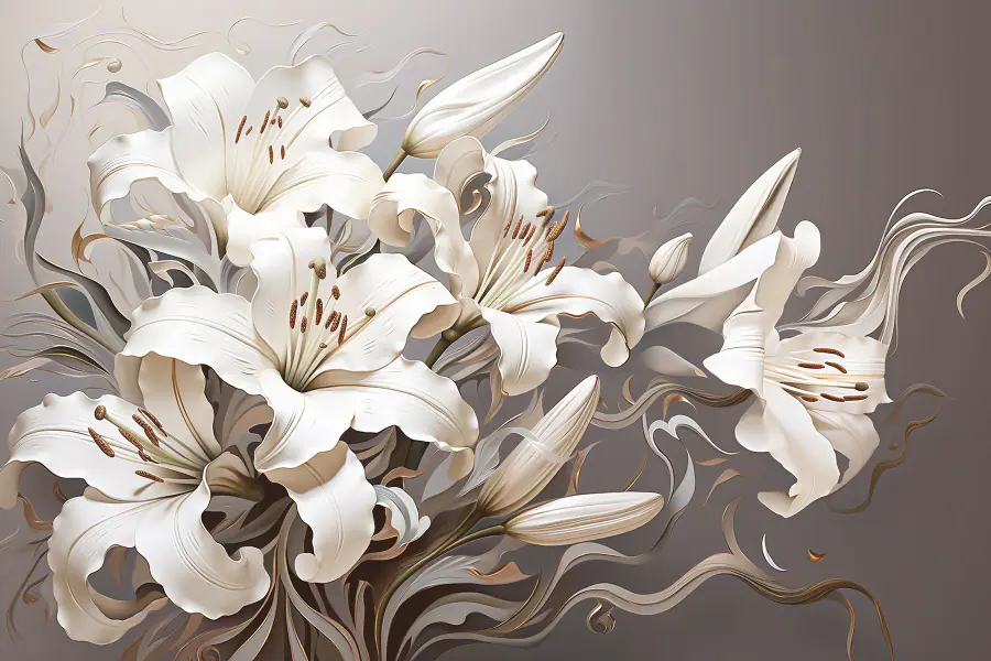 Ταπετσαρίες Λευκά λουλούδια με καφέ και λευκές δίνες