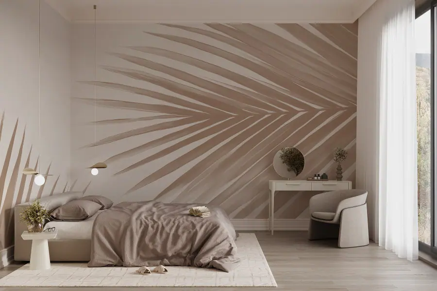 Ταπετσαρίες Κομψά φύλλα φοίνικα σε απαλό φόντο