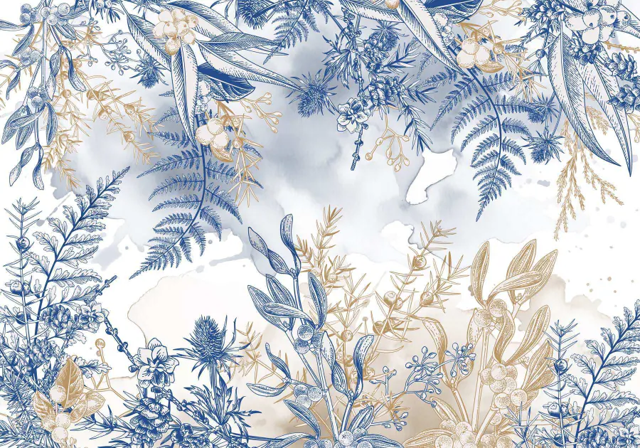 Ταπετσαρίες Μπλε και λευκό φλοράλ μοτίβο