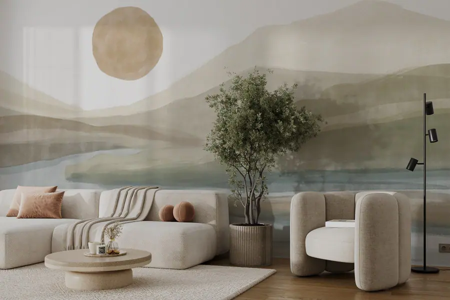 Ταπετσαρίες Ακουαρέλα με ποτάμι και βουνά