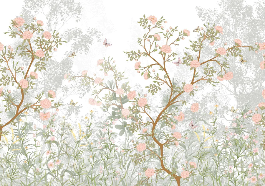 Ταπετσαρίες Ζωγραφική ενός δέντρου με λουλούδια και πεταλούδες