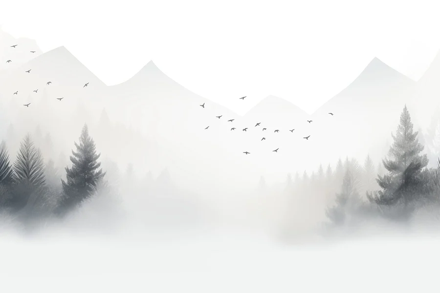 Ταπετσαρίες Πουλιά που πετούν πάνω από ένα ομιχλώδες δάσος