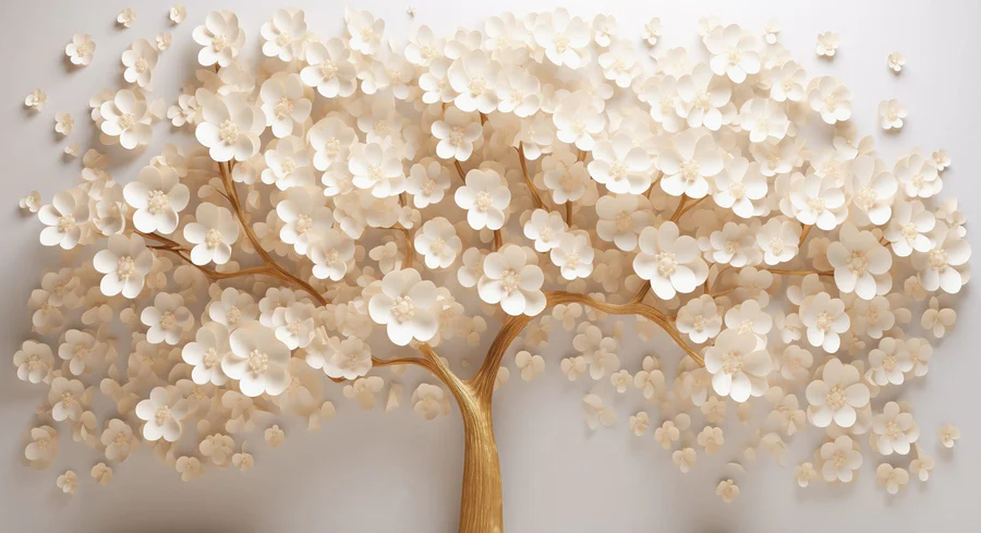 Ταπετσαρίες Δέντρο με λευκά λουλούδια
