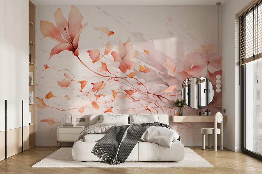 Ταπετσαρίες Ζωγραφική των λουλουδιών και των φύλλων