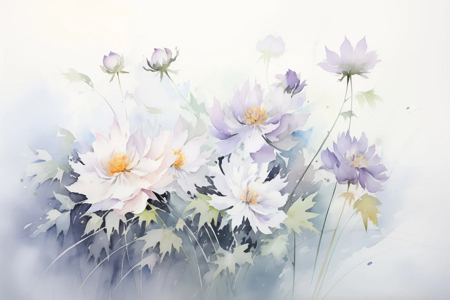 Ταπετσαρίες Ζωγραφική των λουλουδιών σε λευκό φόντο