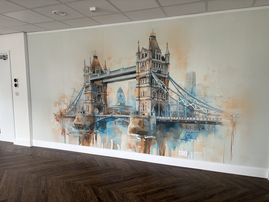 Η τοιχογραφία της Γέφυρας του Λονδίνου φαίνεται υπέροχη στην αίθουσα συνεδριάσεών μας.